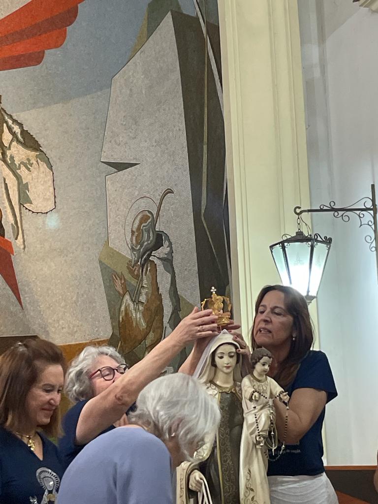 O Movimento das Mães que Oram pelos Filhos coroa Nossa Senhora do Carmo, marcando a festividade do mês de maio.