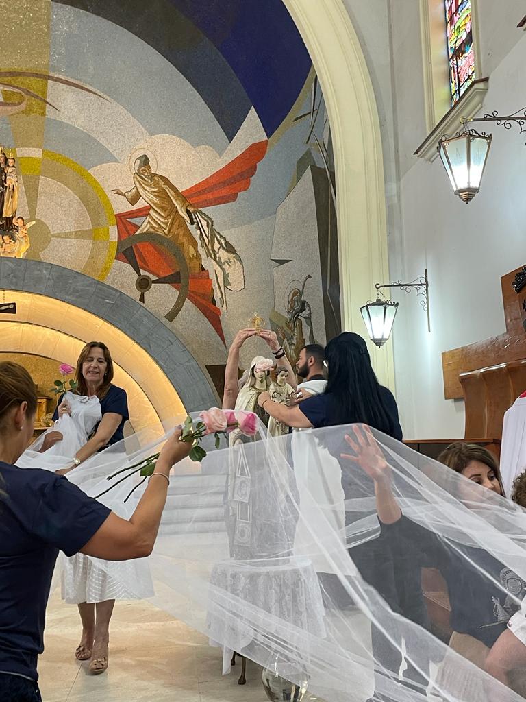 O Movimento das Mães que Oram pelos Filhos coroa Nossa Senhora do Carmo, marcando a festividade do mês de maio.